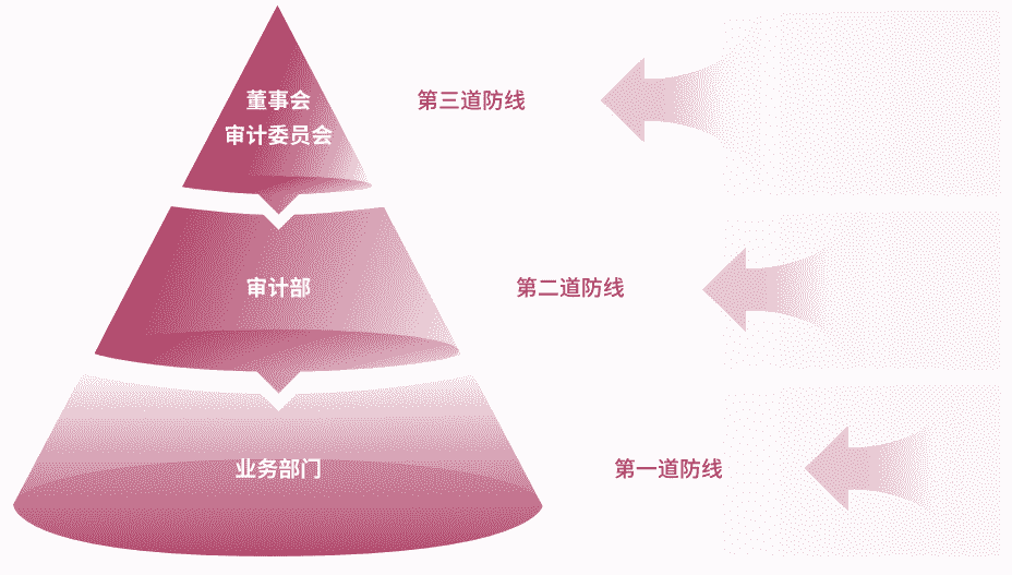 为有效防范贿赂与贪污等商业道德风险,,公司建立了由“董事会审计委员会、、、、审计部、、、业务部门”组成的三道防线,,,全面落实公司商业道德合规工作,,并确保《商业道德行为准则》的有效执行。。。公司审计部在董事会审计委员会的指导下定期评估、、、审查公司的合规运营情况及准则的履行情况,,,,并对公司及所有子公司开展商业道德行为审计。。。公司保证商业道德行为准则审计工作每三年覆盖公司及其所有控股子公司的全部业务范围。。。。