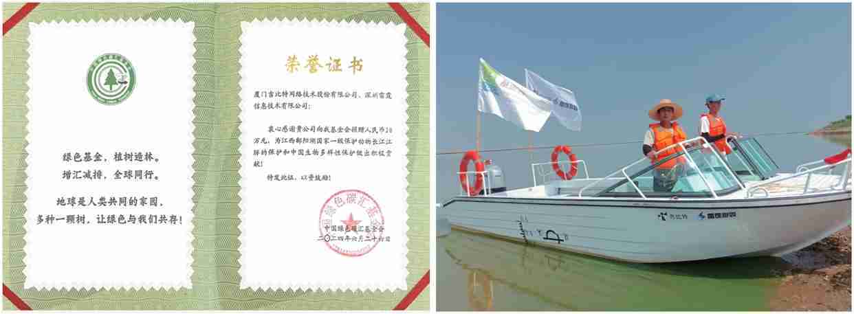 2024年6月,,,公司携手中国绿色碳汇基金会,,开展“保卫江豚”公益活动,,,,向基金会捐赠人民币20万元用于采购全新巡逻艇,,以支持鄱阳湖长江江豚保护工作。。。截至2024年底,,,公司捐赠的资金与巡逻艇已经有效协助巡护队对鄱阳湖1,667头江豚开展保护行动。。。。